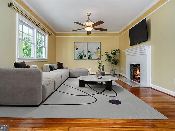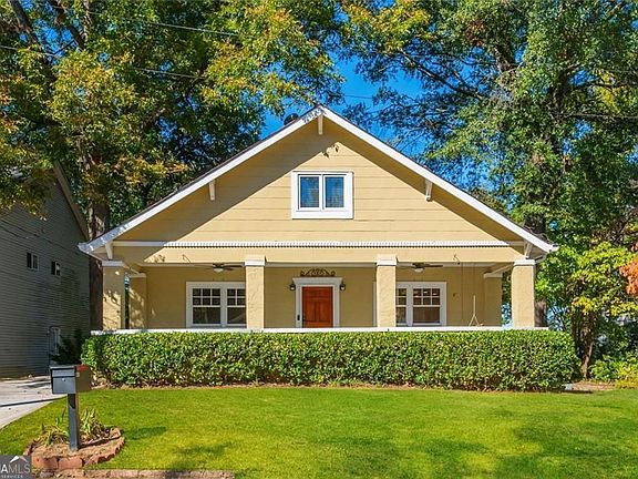 Berkeley Park bungalow-updated where it counts. Classic front porch welcomes you to fireside living and arched dining that flow into a fully renovated kitchen with white shaker cabinetry, expansive quartz counters, gas range, stainless suite, and island + peninsula seating. The main-level owner's suite adds everyday ease with a double-vanity bath and walk-in glass shower, opening to a large entertaining deck and a fenced, usable yard. Upstairs delivers two bedrooms plus a bright office/flex 3rd bedroom with built-ins and a skylight, with additional baths positioned for guests and day-to-day. A covered 2-car carport and ample storage round out the livability. Lives like 3BR/3.5BA at roughly ~2,100 sq ft (see floor plan) on a quiet, walkable Berkeley Park street-moments to Westside Provisions District, minutes to The Works and Westside Park, with quick I-75 access and GA Tech/Midtown close by.