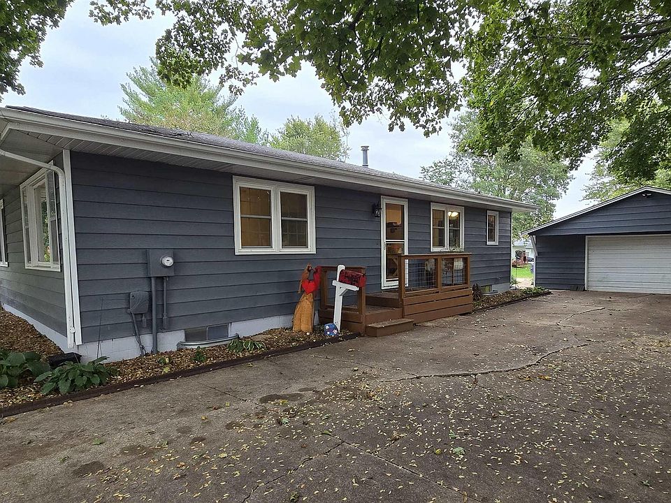 Welcome to 805 Iowa Street in La Porte City! This beautifully updated 3-bedroom ranch perfectly blends comfort, style, and small-town charm. Inside, you’ll find brand-new carpet throughout, freshly painted rooms, and a layout designed for easy, everyday living. The basement features a newly finished epoxy-flaked floor, offering a clean, durable space ideal for storage, hobbies, or a future rec area. Step outside and relax on the large deck with a pergola, overlooking a spacious backyard with a garden, apple trees, and plenty of room to entertain or play. The property also includes a 2-stall garage, steel siding on both the house and garage for low maintenance, and a prime location within walking distance to the elementary school.