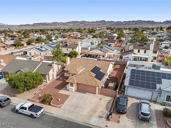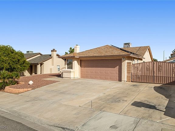 Single-Story Home in the Desirable Highland Hills with NO HOA & Gated RV Parking! Ideally located just minutes from Galloway Elementary and the newly renovated O’Callaghan Park with updated amenities and dog park. This well-kept home features an open floor plan with a spacious living room, shiplap accent wall, and cozy fireplace. The kitchen has been opened up and includes granite countertops, a built-in dining table/island, and plenty of cabinet space. Adjacent flex room is perfect for a home office, playroom, or additional living area. The primary suite is separate from the secondary bedrooms and offers a walk-in closet, dual sinks, and separate tub and shower. Two additional bedrooms are similar in size and share a full bathroom. Private backyard includes a covered patio, large turf area, and RV parking along the south side of the home. Oversized 2-car garage provides extra storage and workspace. A rare opportunity in a sought-after Henderson neighborhood with no HOA restrictions!