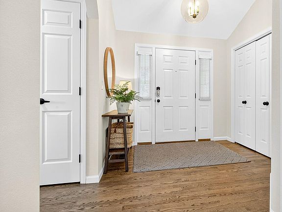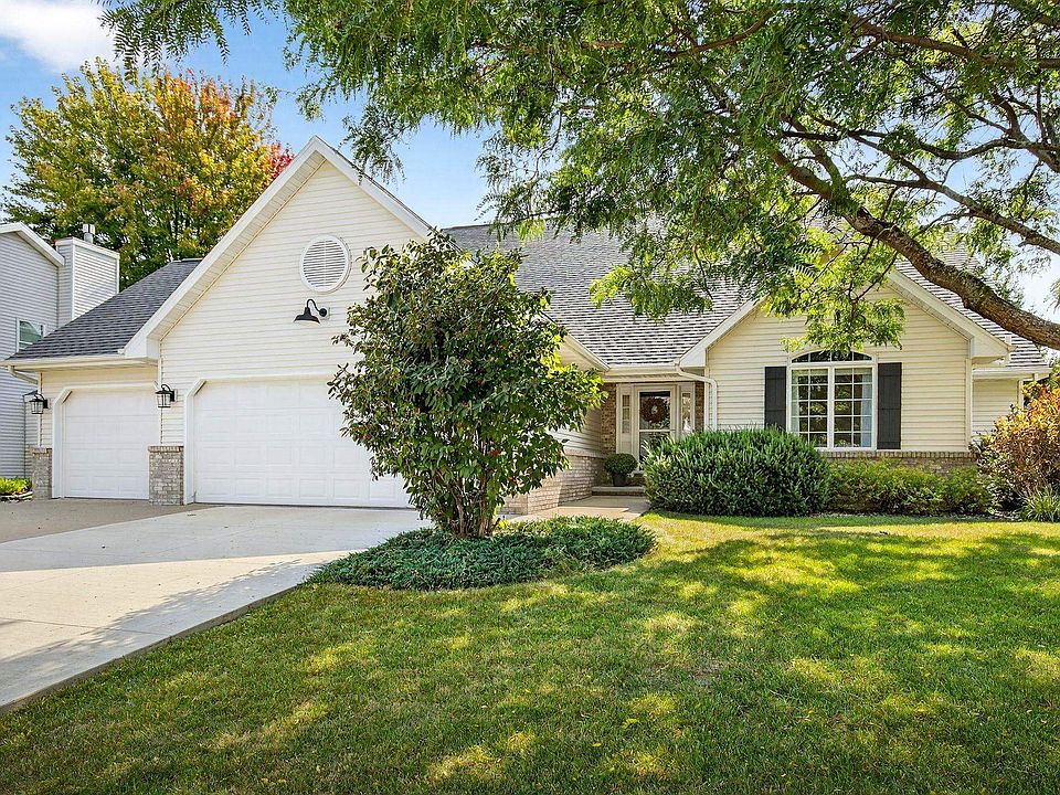 Completely updated in 2023, this stunning ranch offers over 2,000 sq ft of stylish main-floor living! Soaring 12-ft cathedral ceilings, sun-drenched spaces, & oak hardwood floors throughout main floor. The kitchen wows w/a 7-ft island, quartz counters, & new cabinetry, flowing seamlessly to the great room w/cozy gas fireplace. A four-season room invites you to relax with views of the beautifully landscaped backyard, a private sanctuary that blooms spring through fall. The large primary suite has a fireplace, dual closets, & spa-like bath w/walk-in tile shower! The finished lower level delivers a spacious rec room, exercise area, office/flex space, full bath, sauna, garage access. Roof (2023), furnace (2022), A/C (2025). Move-in ready and unbeatable location!