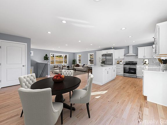 Simply stunning with a THREE CAR GARAGE! With superior craftsmanship and thoughtful touches at every turn, this new construction is sure to impress! The striking facade beckons you in to explore the versatile, open floorplan with gleaming hardwood floors, abundant windows, & a soothing palette with crisp white trim throughout. Single level living at its finest with bonus space below! The cabinet-packed dream kitchen is anchored by a massive quartz island & features stainless steel appliances, gas cooking, & stylish subway tile backsplash. This space opens to a large living area framed by a gorgeous picture window. The spacious dining area has a slider to an absolutely massive trex deck offering seamless indoor/outdoor living & stunning sunset views overlooking your large, private yard. XL primary w large WIC and sleek tiled bath w double vanity & oversized shower. Another large BR and hall bath round out main level. 2 fully daylit flex rooms on lower level along with another full bath offer a wealth of options: additional BRs, office, playroom, den. There's even incredible in-law / blended living potential with a private entrance off a lovely paver patio! The massive 36 x 24 three stall garage is a hobbyist's dream w sep entrance, full windows, & ample lighting. Town water & sewer, efficient propane heating and central AC. Easy access to all major routes in a lovely, wooded residential pocket. Simply a cut above - you're home!