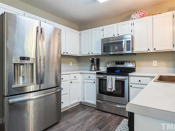 If you've ever wondered what the term "trifecta" means, here's an example: (1) a charming Cape Cod home, (2) less than a mile from downtown Apex, (3) under $300k. This cottage features a downstairs owner's suite with a bathroom suite just renovated this Spring. The bright kitchen opens onto a deck looking out over a deep backyard. Recent updates: roof (2015), HVAC + water heater (2017), downstairs laminate floors (2018), all polybutylene water lines replaced with PEX piping (2021, permitted).
