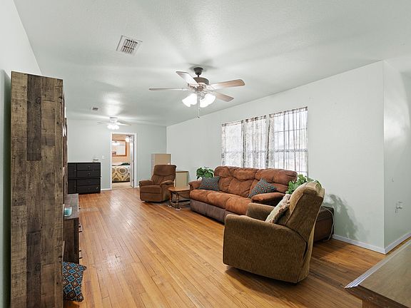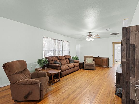 Charming home situated on a spacious lot with exceptional curb appeal, shaded by majestic pecan trees. Inside, you'll find beautiful original hardwood floors throughout much of the home, adding warmth and character. The kitchen has been tastefully updated with modern cabinets, countertops, and appliances, blending style with functionality. This home features 4 comfortable bedrooms and 2 full bathrooms, offering plenty of space for family and guests. Two of the guest bedrooms have new paint and one features a large walk in closet. The living room has plenty of room for an additional dining table or home office area. This home would be great for hosting family and friends for the upcoming holiday season. The backyard is a true bonus, with mature trees, two storage buildings, and alley access. Additional upgrades include replaced windows, updated electrical, and an updated HVAC system, ensuring comfort and efficiency year-round.