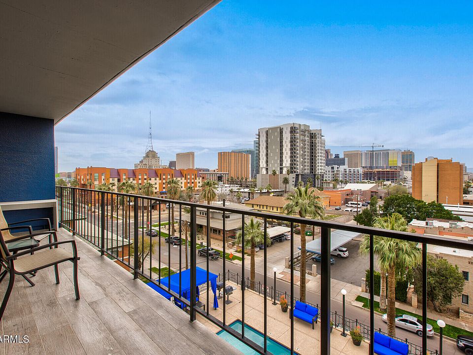 This unit has it all. Location--in trendy downtown Phoenix, right at the center of the action yet situated in a quiet neighborhood. Beauty--this recently renovated home combines the best features of contemporary with a nod to classic Spanish style. If desired, the great room may be divided to create a 2nd bedroom. Outdoor space--generous balcony overlooking the pool with views of the city and surrounding neighborhood. Building amenities--a resort style pool with a patio filled with umbrellas and seating, perfect for entertaining,; a rec room should the weather turn chilly or rainy and a private gym. Income--when you are not living here, the unit can be rented for at least 30 days at a time. Finally, your HOA assessment includes water, HVAC, and electric,
