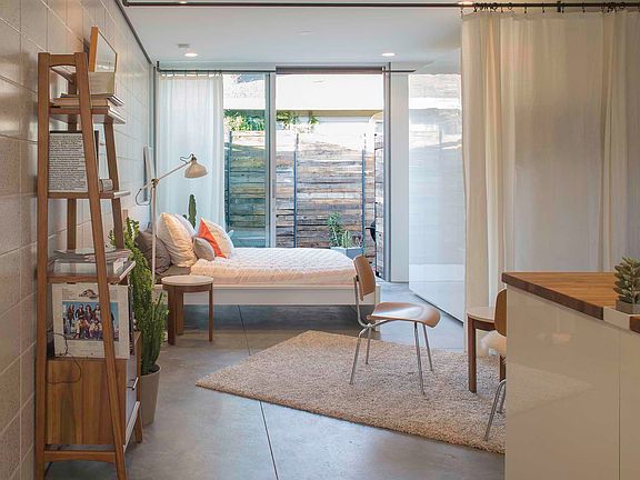 As featured in Dwell Magazine, centrally located in downtown Phoenix, in a neighborhood that locals call the Triangle, White Stone Studios furnishes a modern, clean aesthetic amidst what has become the city's new urban hub. Each of the six units features impeccable architectural detailing, including an oversized satin etched glass front door, a deep-soak tub, a private patio enclosed with tall steel fencing, concrete floors, oak countertops and a private atrium and rear patio. Units come furnished with a queen size bed frame, a 32-inch flat-screen TV, sitting area, stainless steel appliances, bar stools and a full size stacked washer and dryer. The construction is of the highest architectural quality. You will find yourself situated at the center of the city with incredible independent restaurants nearby and plenty of local events occurring within the surrounding blocks. We are animal lovers but these studios do not permit our furry friends.