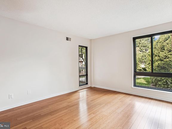 Elegant, luxury living at The Plaza, one of Alexandria City's premier communities. This pleasant 2BR 2BA unit features bamboo floors, a good sized balcony, popular split bedroom plan, and a kitchen with granite countertops and eat-in space. There is a separate dining room/ office space. The living room features hardwood floors and a relaxing, pleasant view of the landscaped courtyard. The primary bedroom features a walk-in closet and spacious bathroom with granite topped vanity with lots of storage. Washer & dryer is in the unit. There is garage parking, directly accessible via the elevator. There is additional parking available on the surface parking lot which is secured after 6pm. With your own private HVAC system, you will control the heat & AC in your unit. This low-rise condominium features features a first class building with the privacy of all concrete construction floors. Extra visitor parking is available. The lovely, landscaped community offers dog walking areas, tennis courts, pool, exercise room, party room, package room, secured building and much more. You will love the location, with shopping and the hospital within a few blocks. Access the free Alexandria City Dash Bus for all your local errands, and avoid traffic and parking fees. As an Alexandria City residents you will have access to trails, community rec centers, and more. Get to National Airport and DC in less than 30 minutes. Contact me to view this home TODAY!