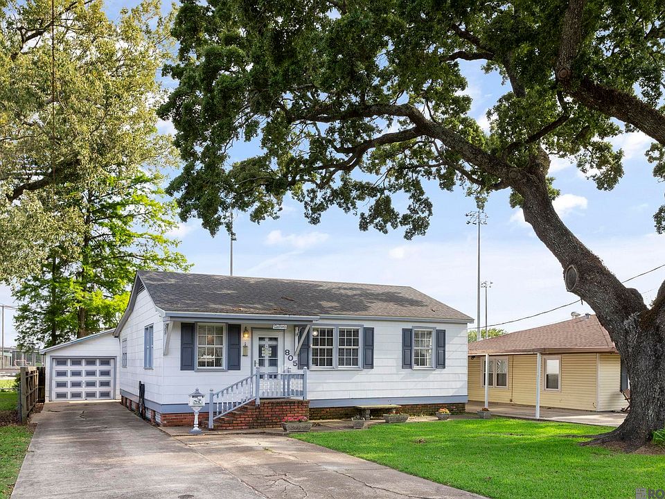This precious home is just across the Mississippi River Bridge in the heart of Port Allen! Pull up to this charming 1950s cottage and immediately you will enjoy the shade trees, landscaping and personal bridge to "Rivault Park" for local baseball games, walking paths and play area located just behind the house. Head inside and find the easy flow from the living area to the large kitchen which features custom cabinetry, pantry and a huge built in for extra storage or use as an entertainment center. There is NO carpet anywhere! Down the hallway you will discover three bedrooms and a full bathroom all well cared for. There is ample parking with extra concrete poured to accommodate six cars easily. This home offers a 20x22 detached garage to house the washer and dryer with so much potential as a workshop, she-shed, man cave, or rec-room!