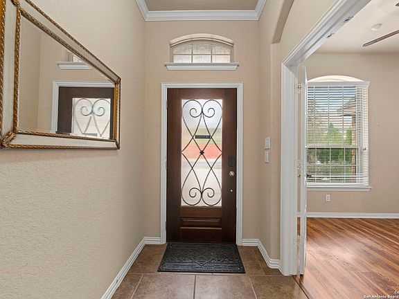 Beautifully maintained 4-bed, 2.5-bath home combining comfort and charm! The primary suite features a walk-in shower and luxurious walk-in tub; guests enjoy their own walk-in shower. No carpet, wood and tile floors throughout for easy care. A new 18.5 SEER HVAC keeps you comfortable year-round. Step onto the large enclosed patio and relax under a redwood pergola with an 8-person jacuzzi, surrounded by mature trees on a peaceful greenbelt. Located in a gated, no-city-tax community with great amenities, this green-certified home includes a full-house water softener plus washer and dryer. Check out our feature sheet for more details.