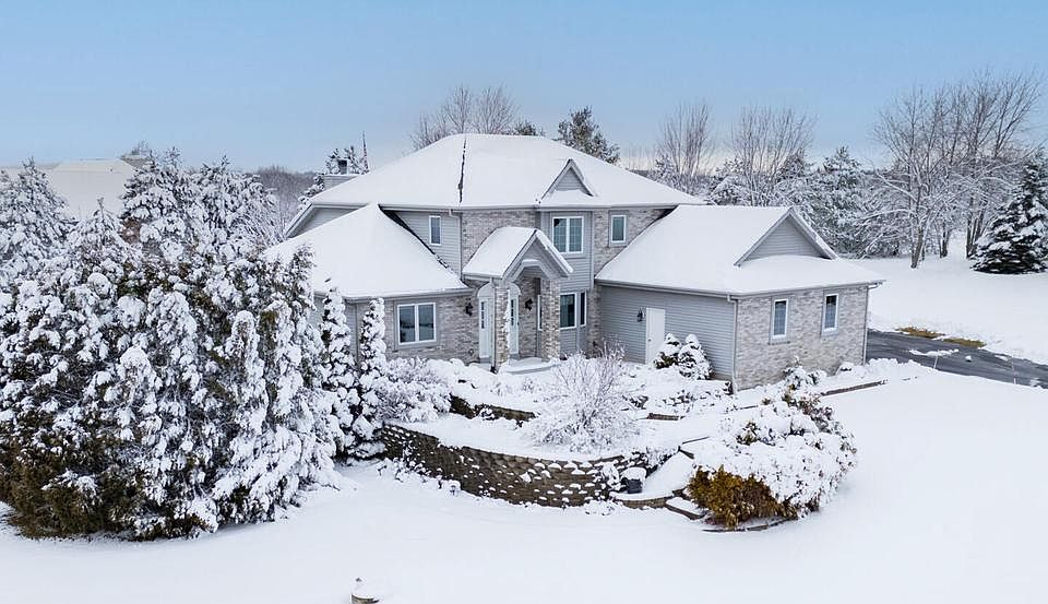 Come enjoy thiis beautiful 2.75 acre country property in a highly-sought after subdivision with tons of updates! You will fall in love with the chef's kitchen and its gigantic granite island, painted cabinets, and new SS appliances. Vaulted ceiling Living Rm has cozy NFP with gas start. Upper level patio off sunroom from kitchen. 4 Bedrooms and 3.5 Baths - Bed 4 in LL off fully finished basement with bar/kitchen and exposed walkout to second patio - w/ outdoor enclosed hot tub. LL also has full bath with sauna and heated floors. Entertaining options for every season! Solid surface or granite counters throughout. 3 car attached, insulated garage with plenty of storage. Part of acreage is a natural wild grass field/trees for less mowing. Ready for your family to move in!