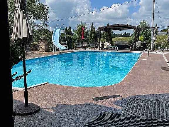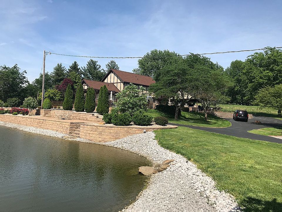 2-story French Tudor with customized Amish-made cabinetry with granite countertops and designer stainless steel appliances including an induction cooktop. Pella windows and doors. Large attached carport and long circular blacktop driveway. 20 x 40 foot in-ground pool with multiple paver patios and gazebos. Pond with a fountain and shady backyard. 2-story guesthouse with 6 bedrooms and 3 bathrooms and an attached 5-car garage.