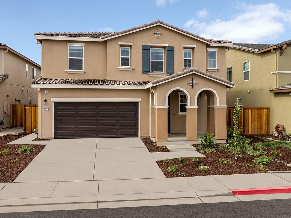 This beautiful Spanish eclectic-style two-story home is located in the new Sycamore at Patterson Ranch community. Just steps from neighborhood parks and within walking distance of the local elementary school, it also offers quick access to I-5 and Hwy. 99 for an easy drive to Tracy, Turlock, and beyond. The open-concept floor plan showcases 9-ft. ceilings, a spacious kitchen with truffle-stained cabinets, quartz countertops, and a central island that flows seamlessly into the great room. A first-floor bedroom creates a comfortable retreat for guests, while upstairs you'll find a versatile loft, convenient laundry room, and a primary suite with both a generous walk-in and a linen closet for added storage. Designed to be ENERGY STAR® certified, this home combines style, sustainability, and everyday comfort. A wonderful place to call home awaits you at Sycamore at Patterson Ranch.