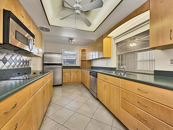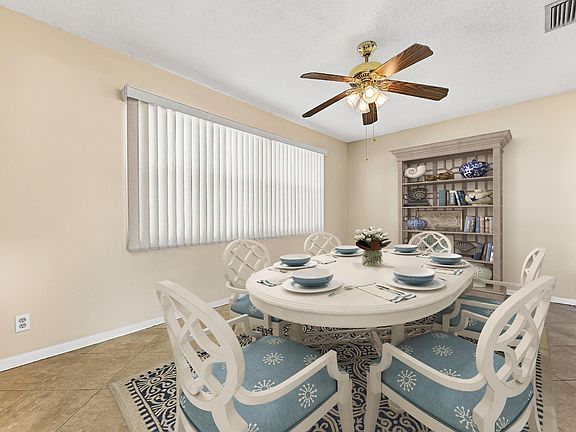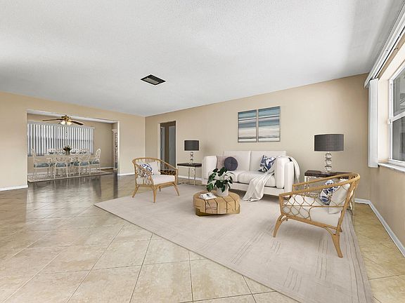 Lovely 2Br/2Ba Edgewood Model home withthousands in upgrades. Freshly painted thru out, Neutral 16'' tile thru out on diagonal except enclosed porch. which has vinyl tile.Kitchen totally redone with beautiful cabinetry and updated stainless steel appliances. Washer/dryer only 4 to 5 years old. A/C replaced 2014. Both baths updated with electrical fixtures, vanities and commodes. Windows all replaced. Enclosed porch has hurricane windows. Accordion shutters except for a couple of windows. Roof Replaced. Double concrete drive plus front porch. Faces south for those Gulfstream breezes. 5 ceiling fans. Garage door replaced. Free Par 3 golf, 3 clubhouses, 3 heated pools. Minutes to shopping, restaurants and ocean beaches., Paid up recreation lease in full. Vacant for quick close. A