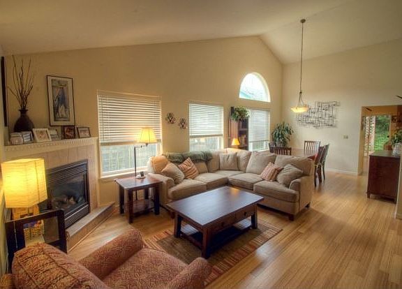 Beautifully updated 3 bedroom & 2 bath one-level home located in a cul-de-sac with fully-fenced backyard backing to a greenbelt - private & gorgeous! High vaulted ceilings & walls of windows flood the home with light. Stunning Bamboo floors thru-out, except in bedrooms. Kitchen with Silestone counters, beautiful cabinets, newer appliances & slider to back deck. Living room w/corner gas fireplace. Master w/vaulted ceilings, full bath & walk-in closet. Back deck w/privacy trellis & built-in bench!
