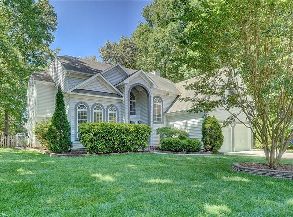 Don't miss this spacious & beautifully updated home in the desirable Great Bridge area of Chesapeake! The lovely curb appeal welcomes you inside to a gracious sunlit foyer with high ceilings. A large family room features a gas fireplace & is pre-wired for surround sound. The updated eat-in kitchen offers stainless-steel appliances, granite counters & immense cabinet & counter space. The charming dining room opens to an office area boasting built-in shelving & a cute window seat. The master suite includes a comfortable sitting area, two walk-in closets with custom cabinets & shelving, and a beautifully updated bathroom with double granite vanity, tiled walk-in shower & jetted tub. The room over the garage is great for a guest room/playroom. Two more large bedrooms & a full bath are also found on the 2nd floor. The exterior deck is a perfect place to relax & enjoy the amazing, fenced-in back yard. A 2-car garage & spacious laundry room are just two more advantages of this wonderful home!