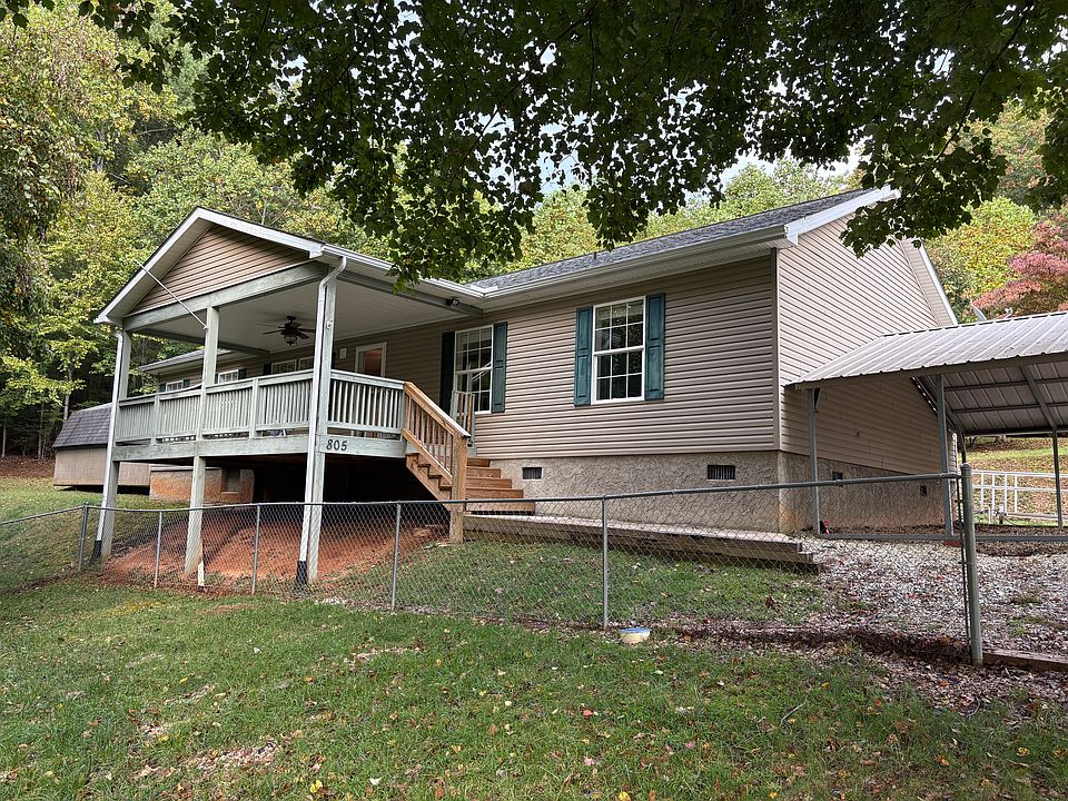 Includes washer / dryer and mostly new appliances, 2 bay carport, 16' storage shed, handicap accessible ramp to new back deck, fully automatic generator, jetted tub in master bath with large tile shower, new engineered hardwood flooring, covered front porch, central heat / air, gas logs, fenced front yard. 40 minutes to Lake James, 1hr to Asheville / Johnson City / Boone.
