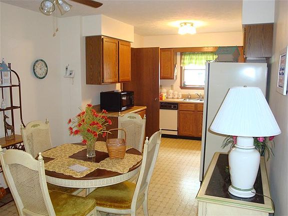 Detached condo. 1,272 s.f. per property record card. Large living room features vaulted ceiling with two skylights. Spacious bedrooms. Plenty of closets and storage areas throughout including pull down access to additional storage above garage. Sprinkler system provided by HOA. 5x6 laundry area and 5x5 pantry. Nice patio surrounded by privacy fence. Roof replaced in 2005. Condo fee is $146.00 per month. (Includes trash, mowing and snow removal). One year Old Republic Home Warranty.