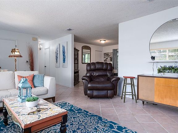 **Charming, Well-Maintained Home in a Prime Location!** This one-owner, meticulously cared-for home offers 1,611 square feet of comfortable living space, featuring three spacious bedrooms and 2 full bathrooms. Featuring an open floor plan with tile flooring throughout the main areas, this home combines functionality and warmth. The inviting living room is bright and airy, showcasing a beautiful stone wood-burning fireplace with a mantle—perfect for cozy evenings. A large tiled foyer with a coat closet welcomes you in, setting the tone for the thoughtful layout. A smart thermostat has been installed and can be conveniently controlled from anywhere. The kitchen includes a charming window box over the sink with a tranquil view of the lush backyard, a breakfast bar, tiled dinette area, and sliding doors that lead to an expansive 31’ x 18’ Florida room. This light-filled bonus space features 15 windows, carpeted flooring, four ceiling fans, and panoramic views of the tree-filled yard—ideal for entertaining or relaxing while watching the Florida sunsets year-round. The primary suite offers generous space, newly installed luxury vinyl plank flooring, a walk-in closet, and a private ensuite with a tub/shower combo. Two oversized guest bedrooms also feature new luxury vinyl plank flooring and double built-in closets. Enjoy mornings or evenings on the covered front patio (over 21 feet long), perfect for sipping coffee, reading, or winding down the day. Additional highlights include a 2-car garage, a roof replaced in October 2020, and a lush backyard, waiting for your ideas. **Note:** Home is under audio and video surveillance—please be mindful during showings. Please note that all information and measurements are provided for accuracy but are not guaranteed. Buyers and their agents should verify all property details, including zoning, schools, HOA rules, pet policies, and other potential uses.