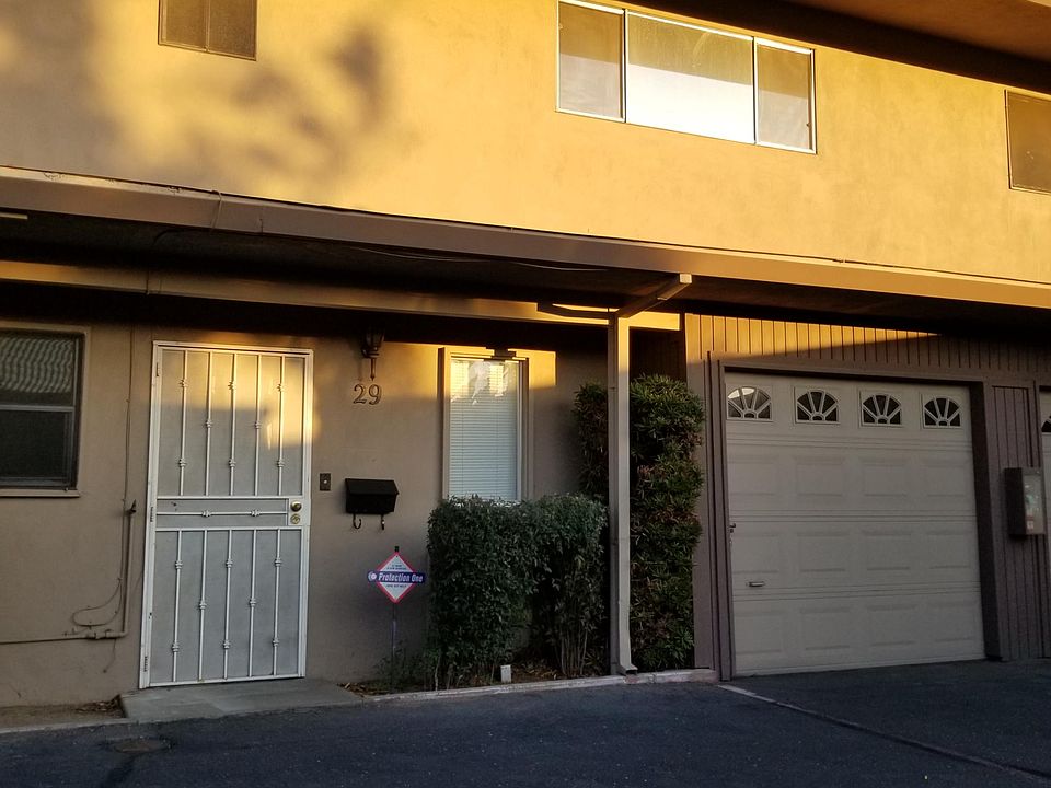 Private, Spacious with over 1600 square feet! 2 bedroom, 2.5 baths townhouse style condo. Central heat & Air. Downstairs features large living space with fireplace, half bath , kitchen and laundry room. Full size laundry room full size washer and dryer. Bright kitchen with lots of counter space includes refrigerator, microwave & dishwasher. Upstairs are the primary bedroom with retreat area with two closets (One walk in ) and big second bedroom with closet & built in drawers. New flooring in baths and laundry. Swimming pool on grounds for your use. Close to Modesto Junior College. Go check it out today! Condo association- Water, Garbage and Pool use is paid by the landlord. Electricity and any cable or internet paid by the tenant. 1 year lease terms.