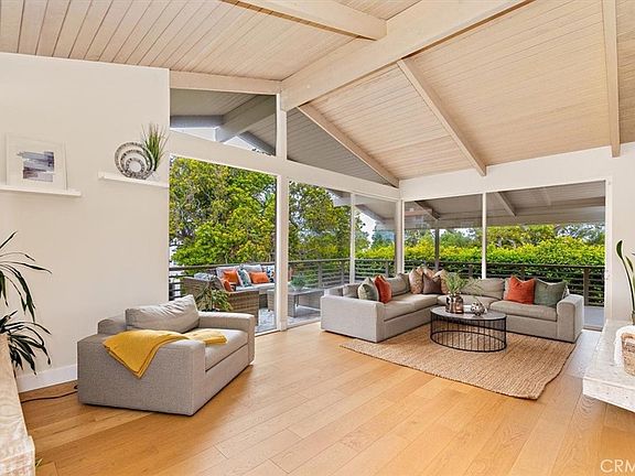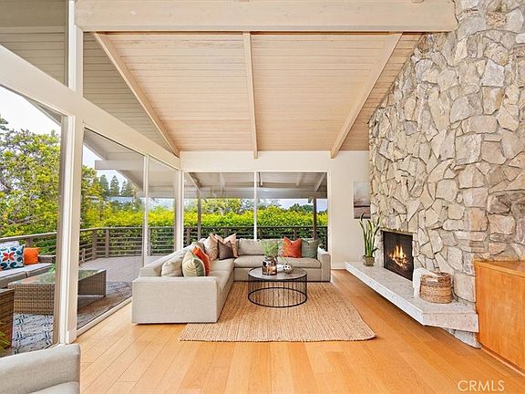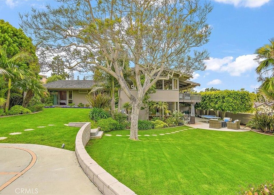 Welcome to this stunning Mid-Century Modern home that is sure to captivate you with its sleek design and remarkable features. From the moment you enter, the walls of glass and soaring ceilings create a dramatic ambiance, allowing an abundance of natural light to flood the space. Situated on a generously sized lot, the backyard resembles a picturesque park, complete with a sports court for your recreational pursuits. This oasis offers ample space for outdoor activities and entertaining, with multiple patio areas and spacious decks that seamlessly blend with the lush landscaping. Step inside to discover an updated contemporary interior that exemplifies the best of taste and design. The bright and open floor plan showcases large-scale living areas adorned with vaulted wood ceilings, infusing the home with a sense of grandeur. Throughout the home, walls of glass provide a seamless connection to the outdoors, offering views of the verdant surroundings from every room. The heart of the home, the kitchen, is a true masterpiece, boasting custom maple cabinetry with stained cement countertops. Its thoughtfully crafted design ensures both functionality and aesthetic appeal, while offering captivating views of the serene backyard. Adjacent to the kitchen is a formal dining room featuring custom cabinets, providing an elegant setting for hosting gatherings. Indulge in the luxury of the master suite, which offers a private retreat complete with a remodeled spa-like bathroom. Additionally, a private patio area off the master suite invites you to unwind and bask in the tranquility of your surroundings. Another highlight of this remarkable home is the family room, featuring built-in bookshelves and glass walls that offer panoramic views of the yard, creating a seamless connection between indoor and outdoor living spaces. As you explore this property, you'll be delighted to discover multiple ocean peak views, reminding you of the coastal beauty that lies nearby. Its proximity to the ocean and Palos Verdes Cliffs ensures that you can easily enjoy the breathtaking coastal scenery. For families, the convenience of walking distance to Palos Verdes Award-winning schools adds to the appeal of this remarkable residence. This contemporary Mid-Century Modern home presents a rare opportunity to embrace a lifestyle of sophistication and comfort. With its striking architectural features, updated interiors, and expansive outdoor spaces, this property is a true gem.