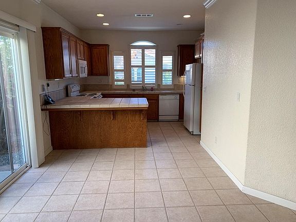 Available October 15th. Age restricted 55+ community. One of the tenants need to be 55 years old. Cozy living room with a gas burning fireplace and glass sliding doors that give access to the the backyard. The kitchen features tile countertops, and tile floors. Hardwood floors, custom recessed lighting throughout most of the house, bathrooms are handicap accessible. Attached two-car garage. The house comes with a fridge, washer and dryer. The complex features a private community swimming pool, club house and is conveniently situated on a quiet gated community.