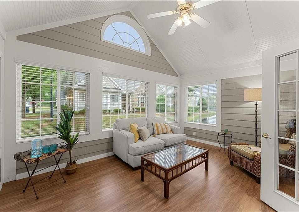Welcome to The Orchards of Roswell, an active adult community where serene surroundings meet modern convenience. This meticulously maintained two-bedroom, two-bathroom home is move-in ready, offering spacious living areas flooded with natural light. Vaulted ceilings, new laminate flooring, and large windows create an inviting atmosphere throughout. The updated kitchen boasts white shaker cabinets, stainless steel appliances, granite countertops, and a generous island, perfect for entertaining. A sunny sunroom, ample storage space, and a convenient laundry room complete with a large closet add to the home's appeal. Both bedrooms feature vaulted ceilings, sizable walk-in closets, and plenty of sunlight. The master bedroom includes an updated ensuite bathroom with a brand-new frameless shower door. Recent improvements, including a new roof installed in September 2023 and a 3.5-year-old HVAC system, ensure peace of mind for the future. Additionally, the refrigerator, water heater, and washer and dryer are only 1.5 years old. Situated just steps from the picturesque lake and clubhouse, residents can enjoy a vibrant community lifestyle with planned activities, exercise classes, a billiard room, library, swimming pool, fitness center, and more. Conveniently located near shopping, entertainment, parks, and services, this home offers both comfort and accessibility. Schedule your appointment today to experience the best of active adult living at The Orchards of Roswell.