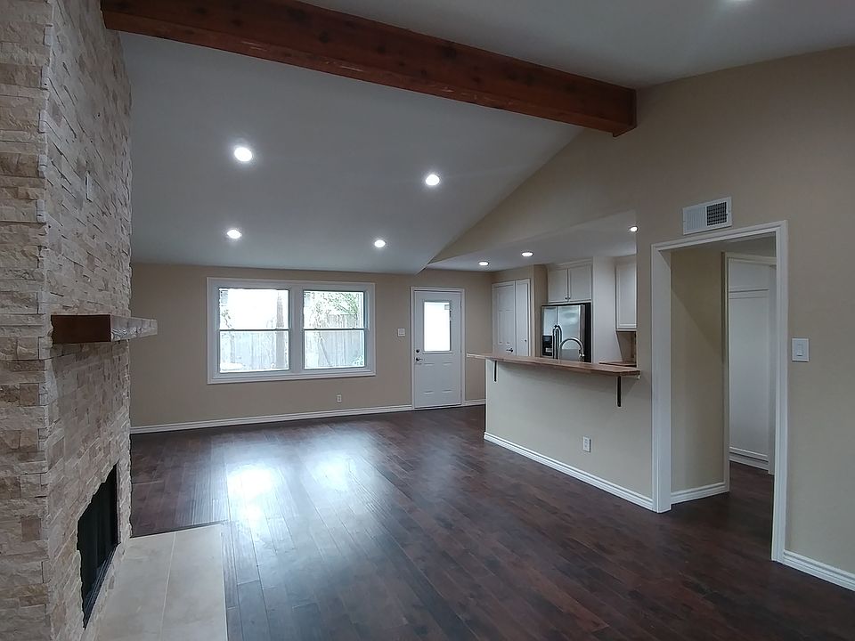 Completely renovated! Not one surface of this home remained untouched - electrical system, plumbing, all new windows, floors, counter tops, and shiny brand new appliances. EVERYTHING is brand new. The center piece is a beautiful stone fireplace set off by designer cedar beam at the peak of an elegant raised ceiling creating a warm and spacious home feeling. Engineered hardwood floors throughout, custom tile surfaces, and butcher block counter tops round out the interior. The combination of multiple large new windows in every room, with innovative skylights in the kitchen and bathroom, create a unique natural lighting experience. If every house gets a nickname, this one is the secret garden house. Absolute privacy with peace and tranquility as you enter into the front courtyard. Surrounded by flowering trees and lush landscaping, you wont believe that you are 2 minutes from UTD and in the heart of the prestigious Pearce H.S. district. NEW ROOF-SEPT 2013.
