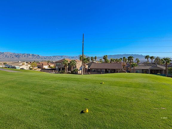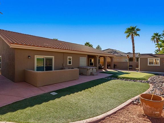 Golf Course View, RV Parking, No HOA. Beautiful, NO HOA 2541 square foot home on the Canyons golf course with RV parking! A rare find in Mesquite! Single Story, 3 car garage featuring 4 Bedrooms/2 1/2 Baths with Mountain Views. Plantation shutters and sunscreens. Shed in backyard, Putting Green and Hot Tub. Granite countertops on a large island. Spacious Laundry Room with utility sink and upper and lower cabinets. Beautiful Desert Landscaping!