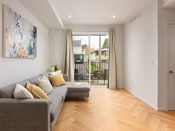 Rarely available quiet, court yard facing 3 Bedroom + Den + Flex Modern Boutique townhome in ROWE by Bosa Properties. Thoughtfully designed by the acclaimed EKISTICS Architecture with interiors by Ste. Marie, this 3-bedroom, 2.5-bath residence showcases modern elegance and open-concept living. Premium features include herringbone-pattern hardwood flooring on the main level, hardwood throughout, multi-zone heating and cooling, sleek Dekton countertops and an UPGRADED Gaggenau appliance package. Enjoy abundant outdoor space with a private front yard, a backyard patio, and a spacious terrace off the primary bedroom. Conveniently located near public transit and within the Jamieson Elementary and Eric Hamber Secondary school catchments.