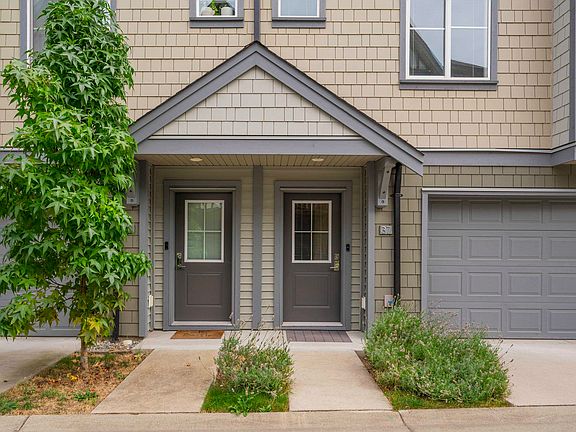 Ashbury + Oak! This bright and spacious 2-bedroom townhome features designer finishes throughout, an open-concept design, oversized windows, double garage. The gourmet kitchen features quartz countertops, shaker-style cabinets, & SS appliances, flowing seamlessly into the living area, where a cozy fireplace with custom stonework & a wood mantel creates a beautiful focal point. Upstairs, offers 2 bedrooms, a convenient laundry room, and plenty of natural light—designed for both comfort and functionality. Outdoor living is made easy with a private, fenced yard featuring low-maintenance astro turf, plus a sunny deck perfect for relaxing or entertaining. Enjoy resort-style amenities including a clubhouse, gym, pool, hot tub, and guest suite—all just minutes from schools, recreation, shopping!