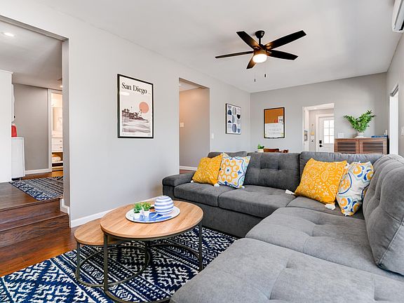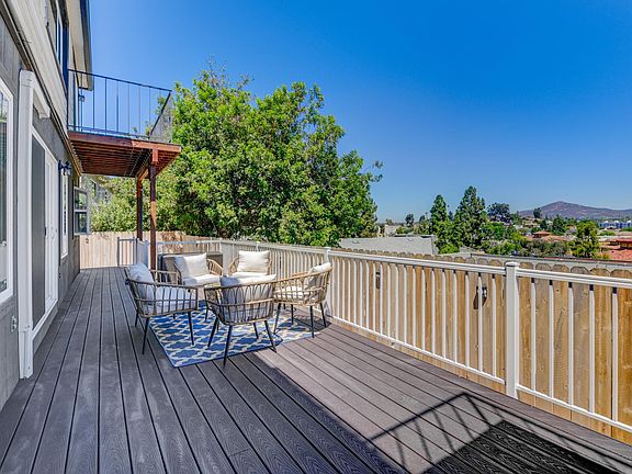 * Available NOW for immediate move-in Prime La Mesa Village 2BR-2BA apartment w/ AC + WFH space + flex space + huge private deck + laundry ALL utilities included NEWLY remodeled + FULLY FURNISHED two bedroom / two full bath apartment within walking distance to La Mesa Village and all it has to offer. Spacious and impeccably decorated for maximum comfort, it feels and lives larger than it is. Yellow and blue combined with grey and wood tones and pops throughout the space (Lemon Drop!) brighten your day and make this home away from home inviting and lively - be it a short stay or a few months. Mostly-all glass walls to the north allow immense natural light and amazing views of the La Mesa / Cowles Mtn. / Santee mountains and valleys for miles, with a massive 500+sqft deck off the living room to enjoy and relax. Just steps to the La Mesa Springs Shopping Center with Vons, Starbucks, China Buffet, Menchie's, Round Table, gyms, banks, and more. Minutes from the main La Mesa Boulevard with dozens of top restaurants (Farmer's Table, Curbside, Por Favor, Johnny B's) and coffee shops (Light Bulb Coffee) and lunch spots (Trolley Stop Deli) and gyms (Will Power) and cafes (Pink Rose Cafe) and more. You won't have to drive to enjoy this apartment and everything around it! The trolley stop in the village is a quick 5-10 minute walk, no need to drive! All-new interior, furnishings, appliances, 1 King + 1 Queen + 1 Twin beds to sleep 6, linens, 65" ROKU TV w/ Sonos stereo surround sound, in-unit W/D set, 3 mini-split AC systems, FAST WIFI. Primary bedroom has a custom built-in WFH desk so you can work by day and relax by night and its own 55" custom mounted TV. Teen/flex space has a twin trundle bed and 50" TV for kid's bonus area or extra guest sleeping. In-unit stackable W/D also in the flex space. Massive 500+ sqft deck off the living room for relaxing evenings and sunset views. Easy access to the 8 and 15 freeways, Snapdragon Stadium, SDSU college and events, and several major hospital sites. Vons - Costco - Walmart - Sprouts all within 1-2 miles max. Perfect for monthly stays due to relocation, displacement, insurance claims, friends and family nearby, digital nomads, nurse / medical technician contracts, home remodels, and more. * This unit -DOES- require navigating a staircase (roughly 15 steps), down to the unit front door, and has a step up into the unit, along with various steps within the unit. Booking this unit means to accept these stairs and cannot cancel for not knowing these were required. Not handicap access friendly. * This is a classic San Diego/La Mesa neighborhood, with one-way streets, and limited street parking. There are 4 units in this complex, so this unit will have access to 3 shared spots in front of the property for 3 units (a long term tenant has the garage), and comes with -1- parking spot and -1- parking pass for 2 designated La Mesa permit parking areas within close walking distance. The permit and map are pinned in the unit for guest usage. $250 fee if lost or not returned. * Lease term negotiable - minimum 1 week up to 12+ months * Tiered pricing for monthly furnished rental lengths, negotiable. Weekly: $1200.00 /wk (+ $300 cleaning fee, $1000 deposit) * Final terms negotiable based on length, number of guests, and any other relevant variables. * All utilities included. Including fiber speed WIFI and YouTube TV. * Fully furnished unit. Not available unfurnished. * No sub-lease or arbitrage. No PM inquiries please. * Parking is not guaranteed in this area, 1 parking spot + 1 parking pass is included. * $2500 security deposit, negotiable depending on lease term. * $400 cleaning fee to be included for check-out cleaning. * Rental application + background check is required, at your expense. (meaning I don't collect any funds or profit) * Pets negotiable, all pets must be disclosed up front. Additional rent/deposit/cleaning fees required. Case by case basis. * Absolutely NO smoking allowed, instant cancellation of your lease, loss of full security deposit, and door codes will be erased for immediate eviction.