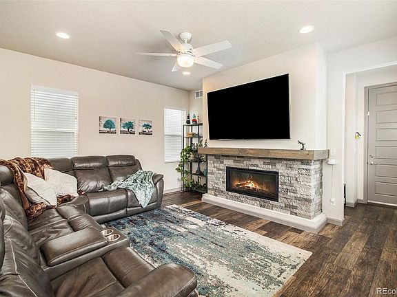 Attractive home in the up and coming desirable Sterling Ranch Community.  Built in 2021 and located on a quiet street with north west mountain views near Chatfield State Park and Roxborough Park. Sellers have recently relocated and the home is priced to sell!!  The home features an open floor plan with luxury vinyl flooring. Kitchen with granite top island and quartz countertops, along with upgraded soft close cabinets and drawers. Gas range adds a nice touch to the inspiring chef!! Stairway off the living room leads to the upstairs bedrooms, where the master bedroom offers a walk in closet and upgraded cabinets in the master bath. Upstairs also includes 2 additional bedrooms and the laundry room. New carpet recently installed on the stairwell and upper main level. Moving to the downstairs basement to the finished basement where the homeowners spent extra time upgrading.  The finished basement features a full wet bar, electric fireplace, bathroom with tile flooring and shower, smart switches, and stylish fixtures. The outside features a large fenced yard and extended patio along with custom Amish built storage shed. Outside Hot Tub to remain for buyer enjoyment!  The 27 Solar Panels offer 80% reduction in annual electric cost. 2 car garage features electric vehicle connections & 8 foot garage door. The home is part of an eco friendly community, with smart lighting and home features including whole home UV Air Purifier and 4 Season Steam Humidifier.  All this in an amenity rich community.