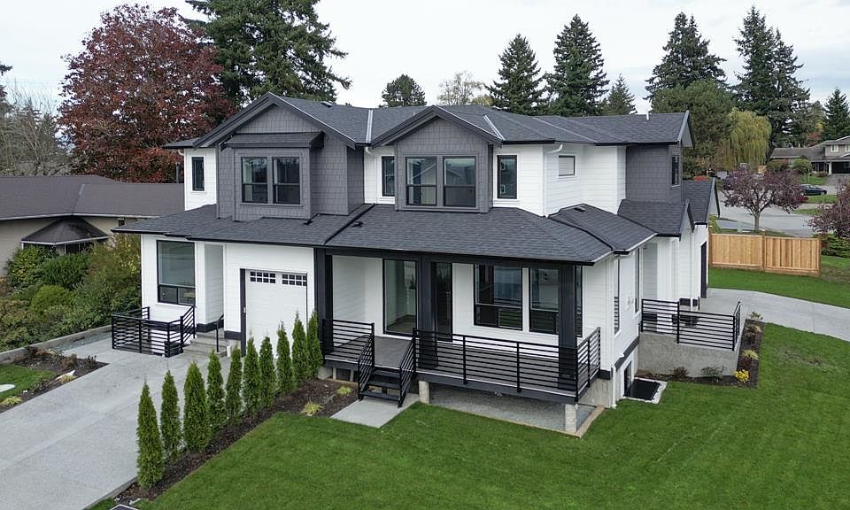 Brand new 1/2 duplex in sought-after Canterbury Heights with NO STRATA FEES and a 2-bedroom LEGAL SUITE! Beautiful corner lot with a VIEW, walking distance to Gray Elementary and Sands Secondary. Main floor offers a bright open-concept living area with gas fireplace, stylish kitchen, back patio, plus a handy office/den and powder room. Upstairs: 3 generous bedrooms including a spacious primary with ensuite and another full bath. Downstairs: self-contained 2-bed legal suite with its own laundry. Central A/C with heat pump and a great yard for kids, pets, or BBQs. Neighbouring unit also available!