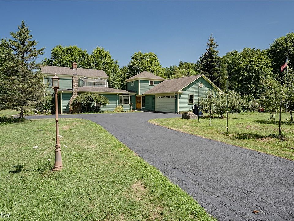 Welcome to a Rare Blend of Historic Charm that meets Modern Comfort, with Nearly 5 Acres of Scenic Privacy. Tucked away on a peaceful lot, this unique home offers space, flexibility, and timeless character. A long private driveway leads to the new front entrance, opening into a spacious sitting room with a wood-burning stove. The serene family room features a full wall of windows overlooking the backyard and opens to an expansive rear deck; ideal for relaxing or entertaining. The main living area includes a generous living room with custom built-ins and stunning wood flooring, seamlessly connected to the updated kitchen with granite countertops, high-end stainless appliances, rich cabinetry, and a large center island accented with period wainscoting. Flooring details throughout the first floor include curly maple in the kitchen, cherry in the dining room, and white oak elsewhere. Trim, doors, windows, and baseboards are all walnut, with cherry stairs and poplar flooring on the second level. The formal dining room features a fireplace and beautiful wood floors, while the library/office offers built-ins, a fireplace, and optional use as a fourth bedroom. The main-level primary suite includes an ensuite bath, walk-in closet, and private deck wired for a hot tub. A nearby bonus room is perfect as a nursery, guest room, or office, with a half bath and laundry room close by. Upstairs, two additional ample sized bedrooms share a full bath. One bedroom includes a fireplace with attic access; while the other opens to a charming enclosed porch/greenhouse—ideal for plant lovers. Additional features include a full basement under all three sections of the home, a 2.5-car garage with a dog shower and plumbing for a sink, a shed. Outside, enjoy the beauty of a mature apple orchard in the front yard and spacious backyard that’s perfect for gardening, play, entertaining, or simply soaking in the natural surroundings. This is a