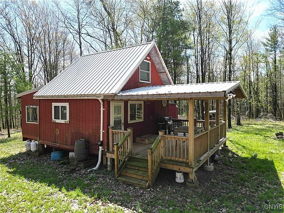 Tucked away on a private road that winds nearly a mile through pristine woodlands, this off-grid retreat offers ultimate seclusion and a connection to nature. Bordering nearly 3,700 acres of State Forest, outdoor enthusiasts will love the endless opportunities for hunting, hiking, and trapping right outside their front door.