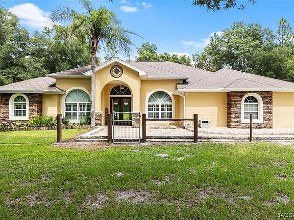 Welcome to this stunning home offering quiet country living while being close to town! 8051 North Neige Point, is a stunning 3 bedroom, 2.5-bathroom home with an abundance of features and amenities to offer. This beautiful property boasts 2,963 sq feet of living space, as well as an expansive 5-acre lot. You'll notice the tastefulness of this property as soon as you enter down the 15,000 Sq Ft paver driveway. The interior of the home features granite countertops, split floor plan, custom blinds, wood and porcelain flooring. Outside, you will find an inground pool with travertine stone deck with a waterfall feature that will calm even the longest of days! Off the pool deck you can enjoy your custom propane fire pit within the screen enclosure. The property also includes a detached 30x40 garage with an RV lean-to for added storage or recreational space. This incredible property is the perfect retreat for anyone looking to enjoy the peace and serenity of nature while still being close to all the amenities of city living. With its close proximity to schools, shopping centers, and parks, this home offers something for everyone. Just minutes from several state parks, hiking / biking trails, rivers, lakes, fresh water springs and the Gulf of Mexico. Enjoy world class fishing, boating, swimming, diving, paddleboarding, kayaking, scalloping AND swim with our world famous manatees! Quiet, small town living, while only being a 1 hour drive to Tampa and 1.5 hour drive to Orlando!