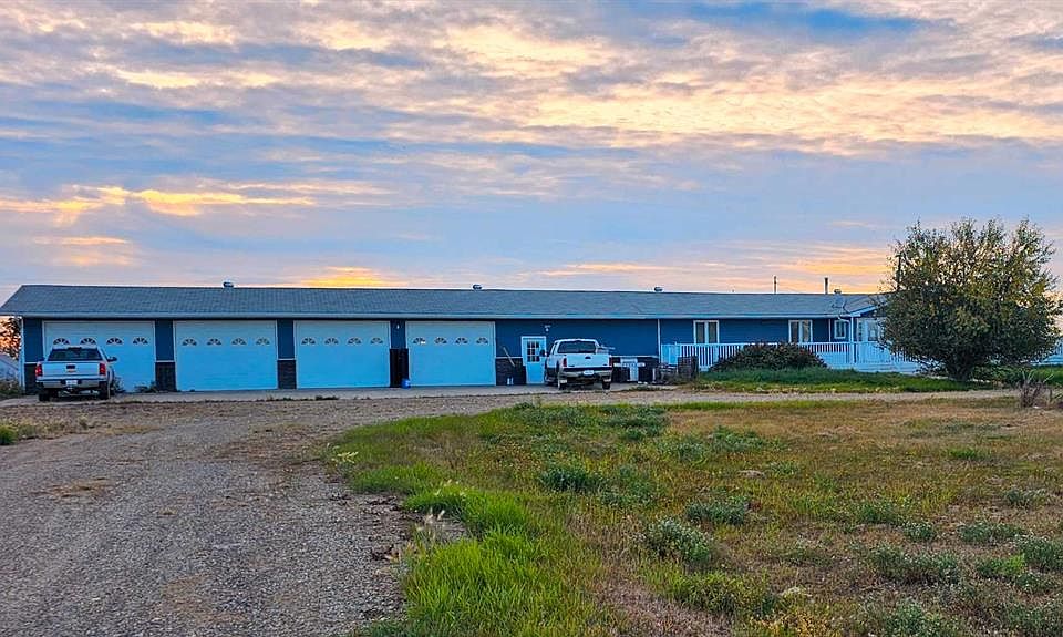 Two homes on one quarter section (160 acres). Ten acres hosting two homes and outbuildings with 150 acres to simply enjoy, farm or rent. Four-car-garage attached to fully developed home plus a second residence: an updated mobile home! 40' X 100' Quonset for storage plus a heated 40' X 42' workshop for projects. Various outbuildings. Crops of canola, hay, alfalfa in recent years. Large ranch style main house with attached four car in-floor heated garage fronted with 30' X 80' concrete parking pad, connected by spacious mud room. Wrap around deck with maintenance free railings on west, north, east sides of house. Dugout draws water to the home and in the garage is a cistern if you prefer to haul in water. Recently fully renovated basement effectively makes the approximately 2,600 square foot home feel new again. Enter the mud room and step left to that long garage or hang a right into the home, via steps or ramp. Main floor is modern and just requires a few touch ups. An addition adds a second large dining space to the main floor, or option to modify the large layout for a variety of uses. Two bedrooms plus a utility room which could be third bedroom. Downstairs, two bedrooms, office, small den and three piece bath. Also, huge games and media spaces. Mobile home has been renovated with a large addition and just needs some minor work. This is an estate sale so please accept the property, inside and out, as is where is. Buyer to check if GST applies.