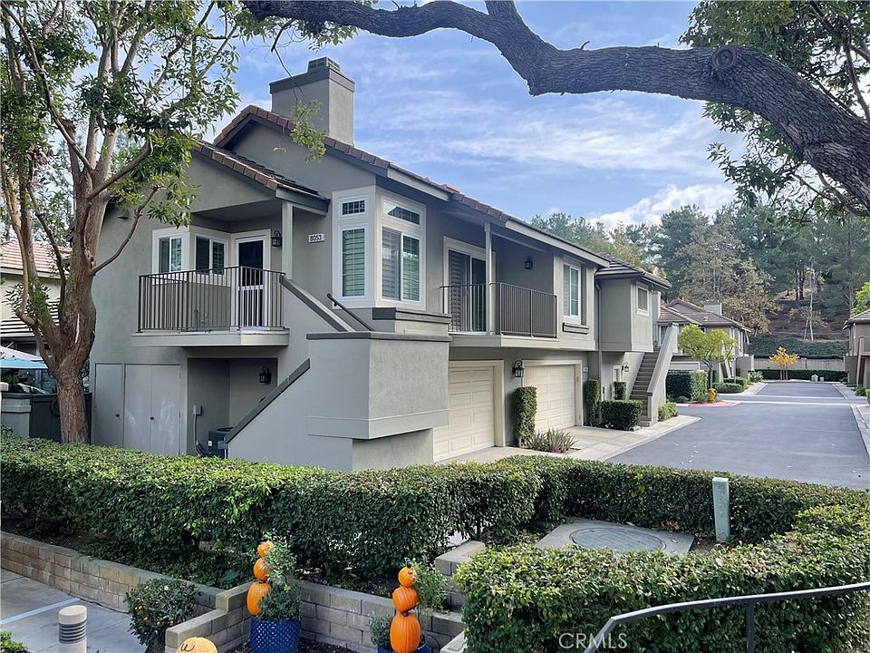 Beautifully upgraded 2-bedroom 2-bathroom Condominium in the desirable Laurelwood community of Anaheim Hills. This tastefully updated single-story condo situated right above its own two-car garage. The bright and open living space featuring luxury laminate flooring throughout the unit, dual-pane windows, recessed lighting, updated bathrooms with new vanities and sliding glass shower doors. The kitchen has been updated with new stainless still appliances, a new stainless still sink with new faucet and granite countertops extending into a convenient breakfast bar. The living room features a gas fireplace creating a cozy space to relax or entertain. The patio door opens to the private balcony off the living room right across from the entrance to the pool. The spacious primary bedroom offers dual closets and a beautifully upgraded en-suite bathroom, while the secondary bedroom and bathroom provide ideal space for family, home office or guest room. The side door from the two car attached garage leads to the stairs going up to the unit. This property is conveniently located right across from one of the two sparkling community pools. With plenty of guest parking spaces and minutes from parks, trails, shopping, and freeways.