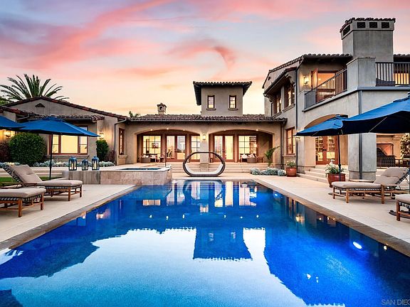 Stunning Custom Home – Featured in San Diego Home/Garden Magazine The award worthy design offers a private primary suite with valley-light views on one side of the house and secondary bedrooms on the other. Luxury features include a dramatic entry, fully furnished casita, wine room, butler’s pantry, and gourmet kitchen. Flexible living spaces include 2 family rooms, dream laundry/hobby room, and well-appointed home office. Outdoor living includes pool, outdoor kitchen, and covered lanais. This home has a prime location with minutes to shopping, dining, schools, The Crosby golf course & sports complex. Recent upgrades include an advanced sound and lighting system, solar panels and more.