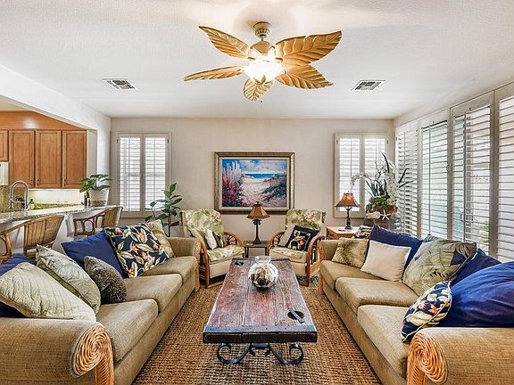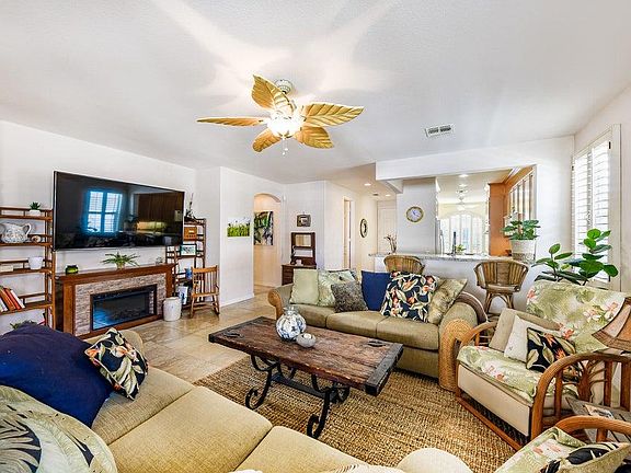 Available to rent until Nov 15th, 2025.This beautifully maintained San Vicente plan is available for the season and offered turnkey furnished! There is tile flooring throughout the entire home, as well as plantation shutters on all windows. The kitchen features granite countertops, a gas cooktop, double ovens, and a stool height bar overlooking the great room which has a beautiful free-standing fireplace. The den has double doors, so it could easily become a third bedroom. The laundry room is fully equipped with your own washer and dryer. The owner's suite has double vanities, a glass enclosed shower, a generous walk-in closet, and separate access to the back patio. The private backyard ideally offers an above ground spa, outdoor seating & BBQ area, and a firepit. Beautiful home and available for the season! Summer rate available. Booked 11-15-24 -3-15-25 Booked 11/15/25 to 3/15/26. Summer rate $2500, in Season rate $4200.