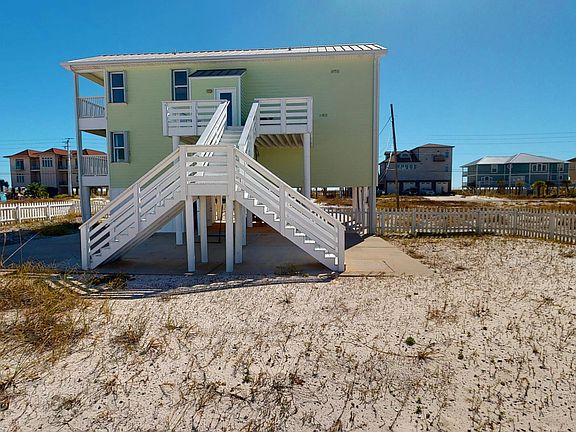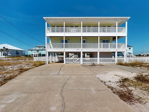 Updated and reconfigured Navarre Beach home with an assumable 2.375% loan subject to lender approval. This two story coastal retreat offers full Gulf and Sound views, direct Beach access and no HOA. The assumable low-rate financing provides a rare opportunity for long term savings compared to today's market loans. Thoughtfully redesigned with three bedrooms, two full baths and one half bath,this home blends comfort and coastal style. The open second floor living area captures panoramic water views and opens to full length covered decks-ideal for sunrise coffee and sunset skies. The kitchen features Corian counters, abundant cabinetry, new stainless steel appliances and a breakfast bar open to the dining area. The primary suite includes a walk-in closet and private bath with shower. Fresh steel appliances and a breakfast bar. From the dining area you'll find a spacious living room surrounded by windows and two sliding glass doors that lead to a covered Gulf-side balcony. The perfect spot to enjoy your morning coffee or evening sunsets.