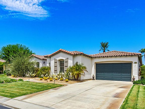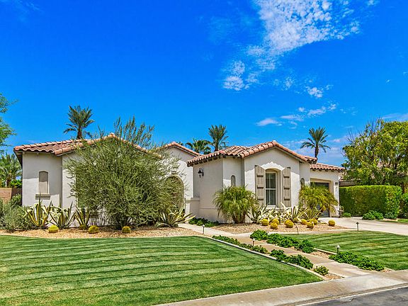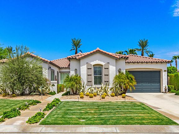 Huge $100,000 price improvement! Best Buy in The Orchards! This stunning single-story home sits on a vast lot, offering unparalleled space and comfort for both family living and entertainment. Located approximately 1 mile from the renowned Empire Polo Grounds, home to famous music festivals, this home perfectly combines luxury and convenience. Inside features 5BR including a separate casita, ideal for guests or an in-law suite. Enter through a charming courtyard w/a fireplace, setting the tone for elegance within. Enjoy the spacious layout w/ soaring 10+ft ceilings, Shutters throughout, separate formal living/dining room for refined entertaining. Cozy family room w/ a warm fireplace for family gatherings. Gourmet kitchen equipped w/ custom birch cabinetry, custom hardware, custom pendant lighting, double ovens, built-in microwave, granite countertops w/bar, and a breakfast nook. Large guest BR features Jack-in-Jill BA, plus one BR has its own private BA. Primary suite Features tray ceilings, a private exit to the backyard. Primary BA features travertine countertops and shower, double vanity sinks, huge soaking tub, massive walk-in closet. Walk outside to a tropical Oasis! Sit in your pool/spa and enjoy the mountain views. Also featuring a fully covered patio. Ideal for outdoor dining. Don't miss the opportunity to make this exquisite property your own! Low HOA. The Orchards HOA allows STRs for music festivals and Tennis weekends.