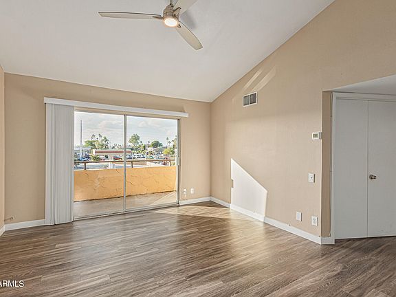 Minutes from ASU and old town Scottsdale, this gorgeous updated condo in Scottsdale is waiting to be your home. Three spacious bedrooms located on the 2nd (TOP) floor in a quiet complex - NO NEIGHBORS ABOVE!!! Loads of light fills the rooms with vaulted ceilings from north facing windows, so you won't be overheated by morning or afternoon sun. Fully remodeled bathrooms with modern finishes. Upgraded custom tile vanities and fixtures. Custom dark grey tile showers with gorgeous accents. Private patio/deck leading out from living room. Balcony offers views of Papago and Camelback Mountain. HOA includes water. Community laundry and a sparkling pool perfect for the upcoming summer months!