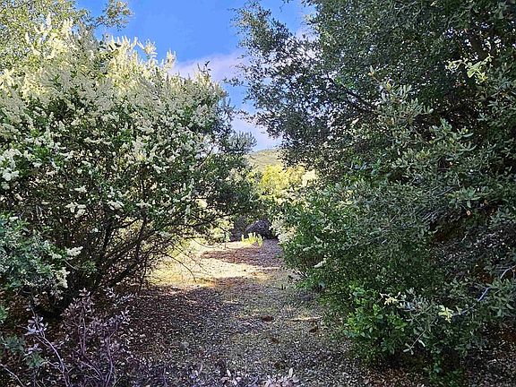 5.35 acres of seclusion and abuts the Cleveland National Forest for added privacy and hiking pleasure. This parcel is located behind the gated community of High Hill and at the end of the cul-de-sac. Access this parcel through the natural terrain and trees to a concrete building that survived the Cedar fire of 2003 and houses the original well currently not in operating order. This property, as other homes in community, are OFF THE GRID and use solar, wells and generators (when needed) for operating your abode. Amazing views of the mountains and valley. Come see for yourself.