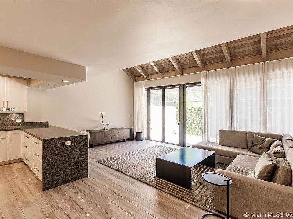 Newly remodeled townhome ready to move in. Formal dining rm.spacious living room w/vaulted beamed ceiling. New kitchen w/ Bosch & LG appliances, eat-in counter. 3 baths completely renovated. New kitchen w/ wine cooler & laundry. Master bath w/dual sinks, shower and tub. Walk-in closets,custom built ins. Quality tile floors. High impact windows & doors. New plumbing.Electronic, keyless double entry doors. New 4-ton central ac system. Storage room. Amenities include oversize pool, jacuzzi, 4 tennis courts,2 handball courts, gym. 2 reserved parking spaces plus guest parking, a 24-hour guard gated entry plus roving guard security.