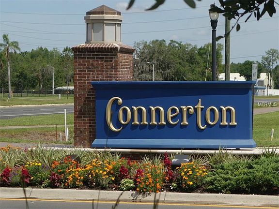 This 4 bedroom home is over 2200 square feet and features the master suite on the first floor, master bath with garden tub/walk in shower, along with a den/study that is set off the formal dining area. Beautiful 18 inch ceramic tile covers the main living and dining areas of this home. The kitchen is highlighted by GE stainless steel appliances, 42 inch cabinets, Corian countertops, pantry, and a breakfast bar that opens up to the great room. A large screened patio that is partially covered allows you to enjoy the pond view in comfort. The upstairs bedrooms are good size and have great views of the pond. CONNERTON is a great community in Central Pasco County that is close to schools, shopping, and entertainment. You will be impressed with the first class amenities that are offered in CONNERTON including a large community pool, clubhouse, tennis courts, basketball courts, soccer field, parks, and playgrounds. Come see this gem and see what CONNERTON has to offer. Call today to schedule a showing.