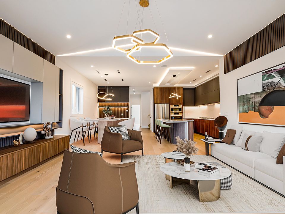 Quiet streetModern kitchenGas cookingLarge islandLarge sliding glass doorsCovered deckEuropean tiles