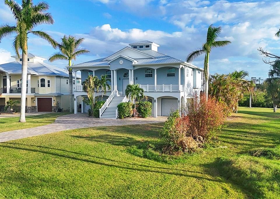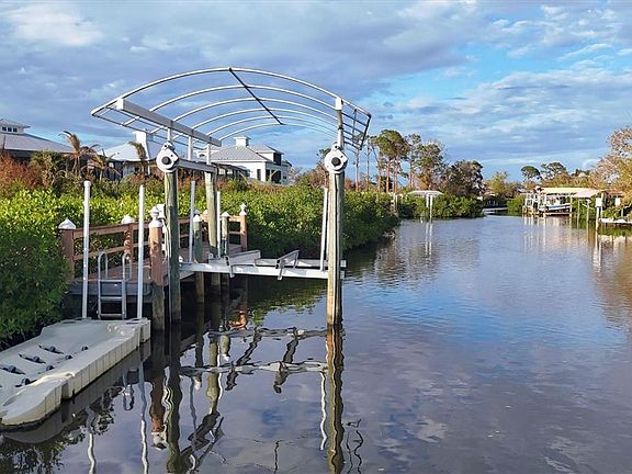 Motivated Seller! A Luxury Statement of Waterfront Living! POOL HOME! FULLY FURNISHED! Public Water and Public Sewer! GREAT ELEVATION! GATED!ONE OF THE KIND!It is located in Hidden Waters, a gated waterfront subdivision on Oyster Creek. NEW impeccable 2-Story Key West Style Beauty nestled along Oyster Creek behind the gates of the exclusive Hidden Waters Subdivision. Spacious custom 4 BR, 3½ BA home with contemporary flair built to the newest hurricane and energy efficiency standards. Solid concrete foundation with fully enclosed 2+ car garage. Elegant split entry stairs leading to spacious, wide open living area with gas fireplace and glass sliders opening to the huge 56x13 ft. A 2-story cage embraces the heated 34-foot pool, Jacuzzi & outdoor gas fire pit. Kitchen with bar island next to dining area. Also on main floor: office with French doors, powder room, large laundry and a spacious master suite with drop-dead gorgeous bath w/shower & tub, plus two custom WICs. Downstairs are 3 guest bedrooms, 2 bath & a lounge. All downstairs bedrooms with custom WIC & direct access to pool & large sundeck. Same neutral 20” tile throughout the whole house, all doors and sliders 8 ft. high, & all bedrooms with tray ceilings. There is a little beach area with Coconut Palms, a bond fire pit, & a long walk way leading through a mangrove belt to the private boat dock with a new 7000 LB boatlift. Short 3600-foot boat ride to the Intracoastal Waterway & beaches. Discover the nearby pristine Gulf beaches, where you can bask in the sun, partake in water activities, or simply relish the tranquility of the ocean. Embark on nautical adventures from the conveniently located marinas, allowing you to explore the region's captivating waterways and nearby islands. Fishing enthusiasts will delight in the world-class fishing opportunities, while golf enthusiasts can indulge in a variety of renowned golf courses.Englewood is known for its thriving shopping and dining scene, featuring a diverse range of retail centers, boutiques, and restaurants. Immerse yourself in the vibrant downtown area, boasting charming shops, art galleries, and entertainment venues. The city hosts numerous cultural events, festivals, and community gatherings throughout the year, ensuring there's always something exciting happening. Beyond the city's amenities, this vacant lot offers proximity to breathtaking nature parks and preserves. Englewood also boasts excellent educational institutions, reliable medical facilities, and convenient transportation options. The city's welcoming community and strong sense of belonging make it an ideal place to establish roots and create lasting memories. Experience the best of Florida living, with nearby beaches, golf courses, and outdoor recreational activities just a short drive away. Don't miss out on the chance to own this extraordinary home.