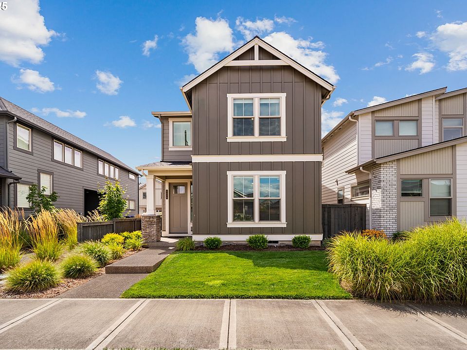 Welcome to the Butternut Creek community, where quality craftsmanship meets modern comfort. This is one of Pahlisch Homes’ most popular floor plans. Move-in ready and meticulously maintained, it offers an open-concept layout perfect for lively gatherings or quiet nights by the fireplace. The kitchen blends style and function with quartz countertops, stainless steel appliances, an eating bar, a pantry, and a half bath. It flows into the great room, which features a dining area, a cozy fireplace, and storage under the stairs. Upstairs, the primary ensuite is a true retreat with high ceilings, a sitting nook, a walk-in closet, dual sinks, and a walk-in shower. A spacious loft/bonus room offers endless possibilities and is ideal for a home office, media room, or game space. Two additional bedrooms and a full laundry room complete the upper level. Enjoy low-maintenance fenced side yards and community perks, including parks, trails, and a basketball court. The HOA also maintains the front yard. Just minutes from Intel, Nike, Hwy 26, shopping, and dining, this home is a rare find in a quiet, desirable neighborhood.