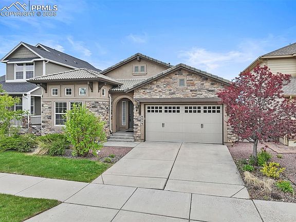Welcome to this stunning 3-bedroom, 2.5-bath ranch-style home in the heart of Banning Lewis Ranch—complete with a dedicated office that can serve as a fourth bedroom. Like new and loaded with upgrades, this home offers modern living at its finest. Inside, you’ll find BRAND NEW high-end luxury vinyl plank flooring and plush carpet throughout, along with a gourmet chef’s kitchen featuring premium stainless steel appliances and an included front-loading LG washer and dryer. The spacious layout includes two dining areas, two family rooms—each with a cozy fireplace—and a large composit deck offering unobstructed views of majestic Pikes Peak. The fully finished basement is designed for fun and functionality, complete with an Olhausen pool table, a wet bar with mini-fridge, generous storage space, and a covered walk-out patio. Outside, the backyard is beautifully landscaped, fully fenced, and ready for relaxing or entertaining. Located in one of Colorado Springs’ most desirable neighborhoods, this home is part of a vibrant community featuring over 40 acres of parks, green space, and trails. Residents enjoy resort-style amenities, including a sparkling pool, a brand-new water park, tennis and basketball courts, a 24-hour fitness center, and the highly rated Banning Lewis Ranch Academy K–8 Charter School just around the corner. With quick access to Peterson and Schriever Space Force Bases, the Air Force Academy, and the Powers shopping corridor, this home truly has it all. Meticulously maintained and move-in ready, this is Colorado Springs living at its best.