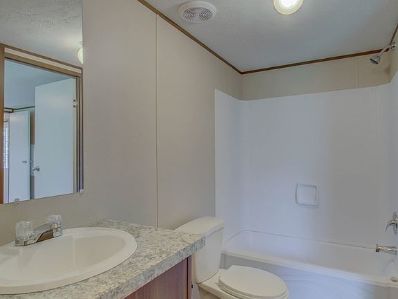 The large living area sits adjacent to the kitchen and dining area, which is an ideal arrangement for entertaining. This cozy manufactured home has a popular split floor plan, making it perfect for small to mid-size families.